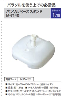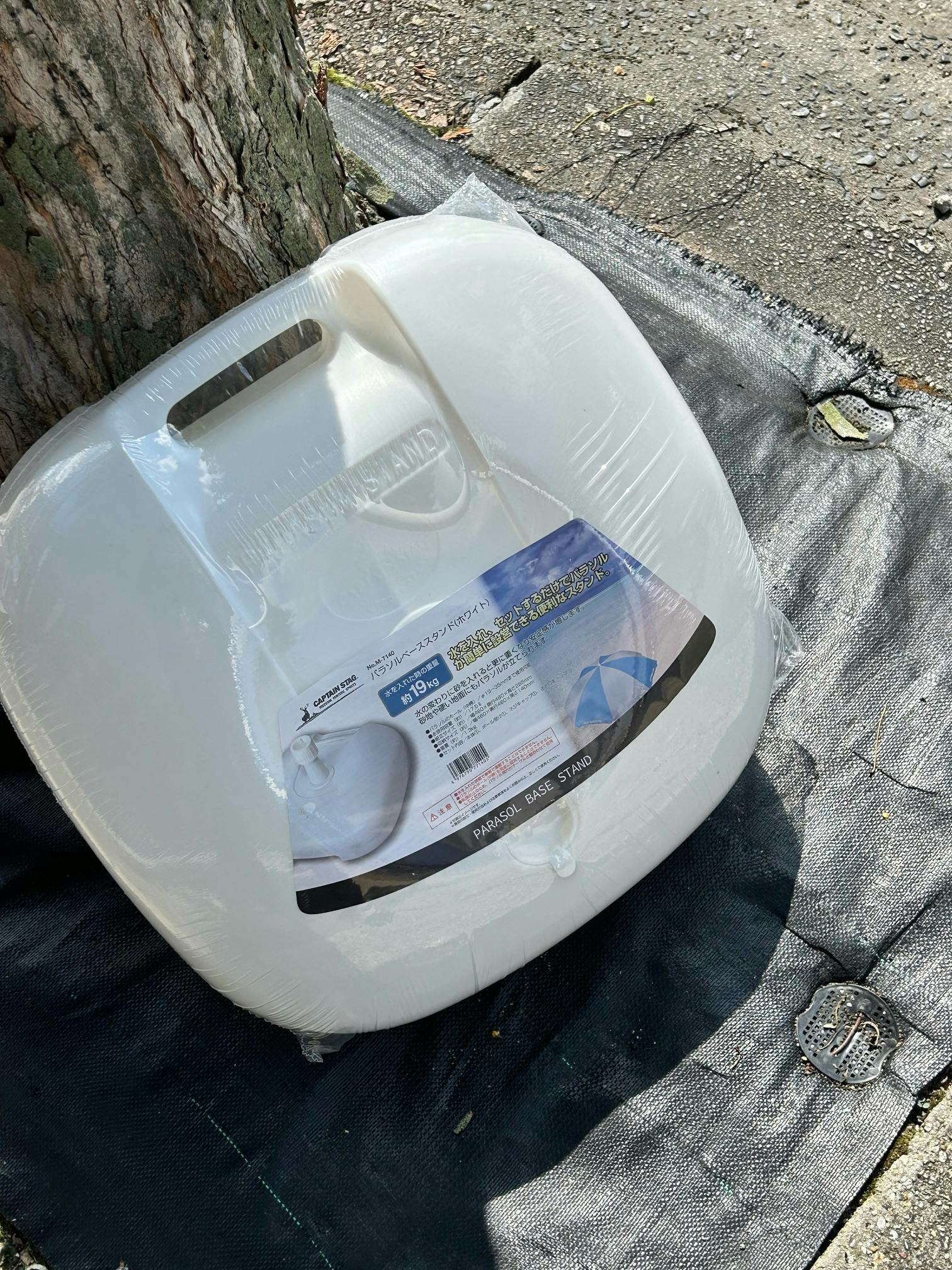 パラソルを使う上での必需品 水を入れて使用するタイプです。