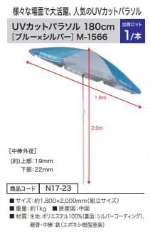 N17-23 UVカットパラソル 180㎝ ブルー×シルバー