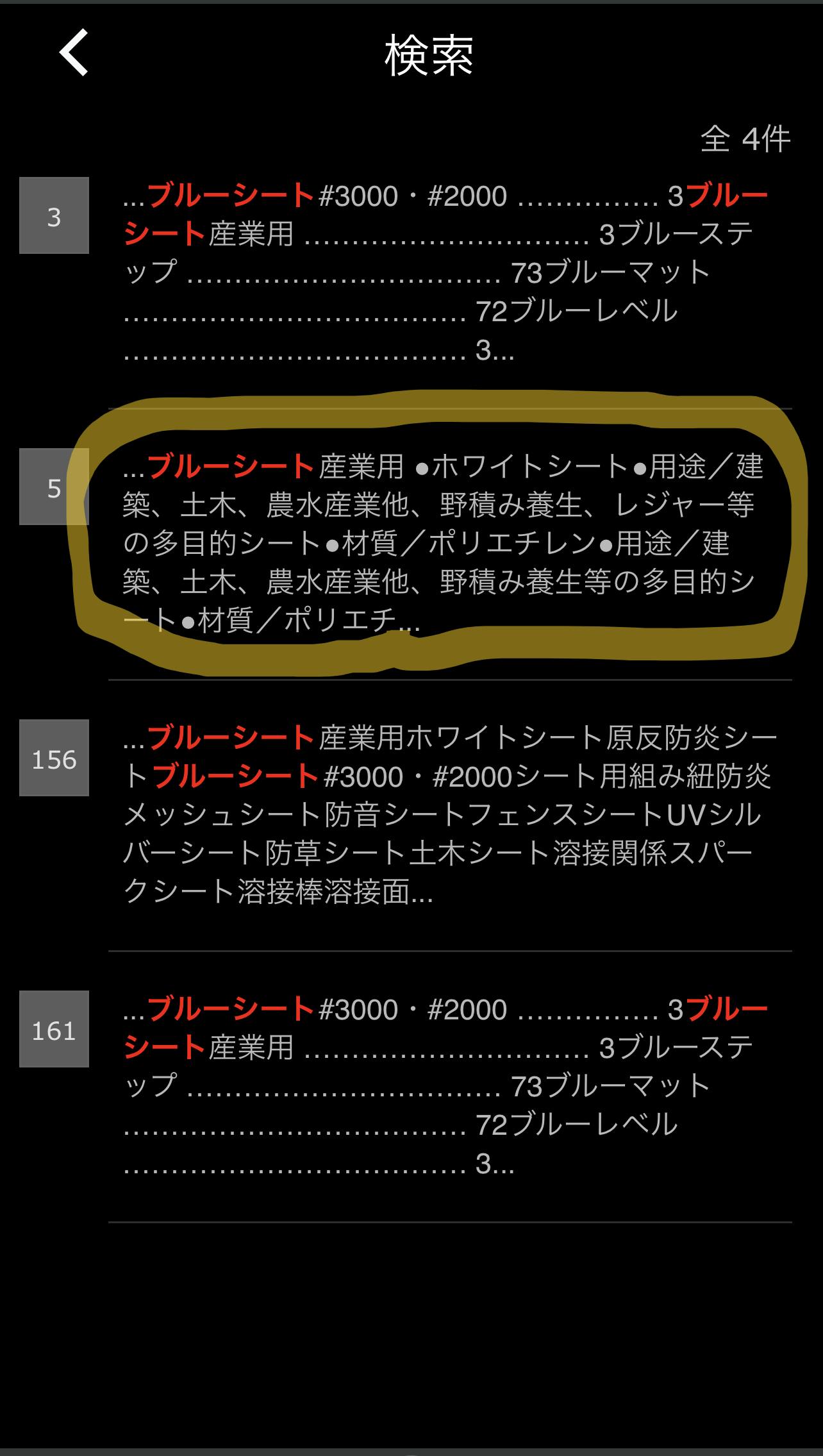 ⑨検索した商品の文字に赤いマーカーが付くので探しやすい仕様